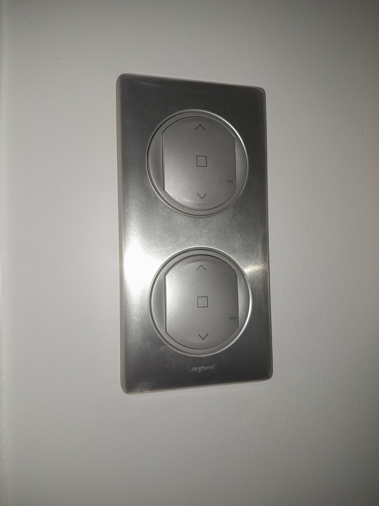 ou que cet interrupteur doit pouvoir « bouger » (chambre d’enfant qui évoluera avec l’âge de celui-ci). - Un interrupteur de volets roulants sans fil, radio que l’on place à l’entrée de la pièce (et non à la fenêtre) afin d’allumer la lumière et de fermer le volet, le soir,