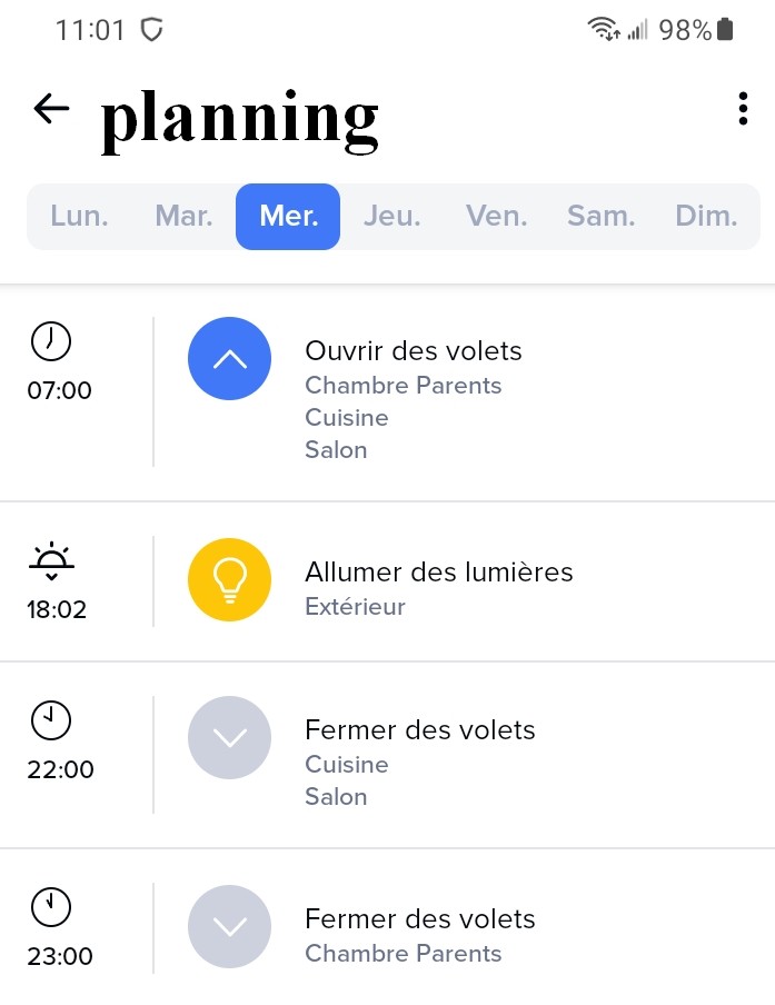 Ouvrir les volets roulants l’été quand le thermostat extérieur (connecté) détecte plus de 25°C,